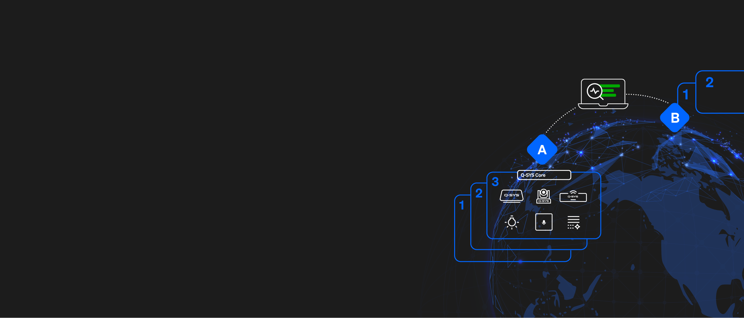 Microsoft マーケットプレイスの Q-SYS Reflect をご覧いただきありがとうございます。Q-SYSは、Microsoft Teams Roomsやコラボレーションスペースなどで、すべてのシステムとデバイス、およびその状態とパフォーマンスの傾向の統一されたグローバルビューを提供します。Reflect は単なる AV ソリューションへのアドオンではありません。 AVインフラストラクチャー向けのデータアグリゲーターおよび可視化エンジンです。