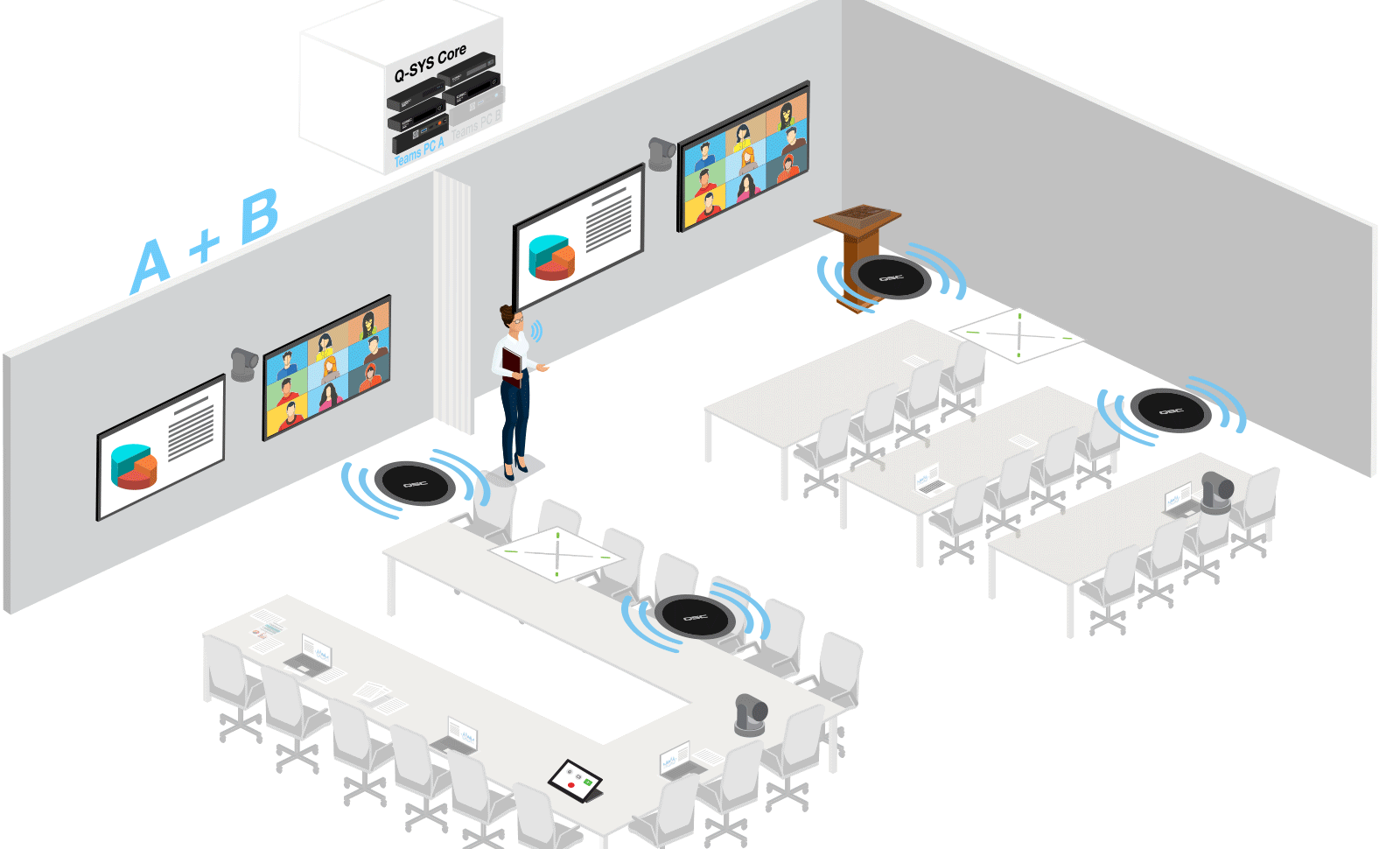 Works with Q-SYS RoomSuite Modular System