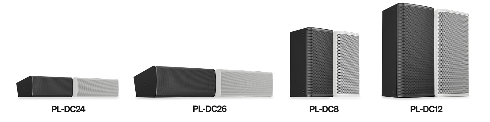 - PL-DC26、 PL-DC8、PL-DC12には再構成可能なホーンが含まれており、音響カバレッジをより適切に制御できます