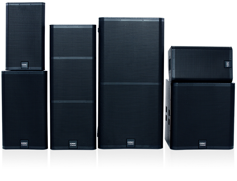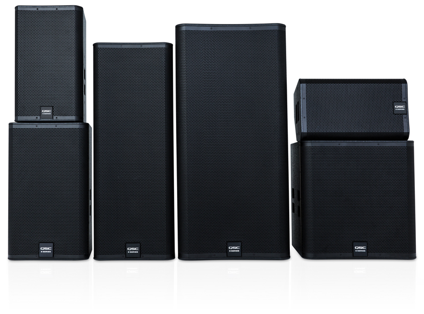 Stacked image of the E Series family of loudspeakers.