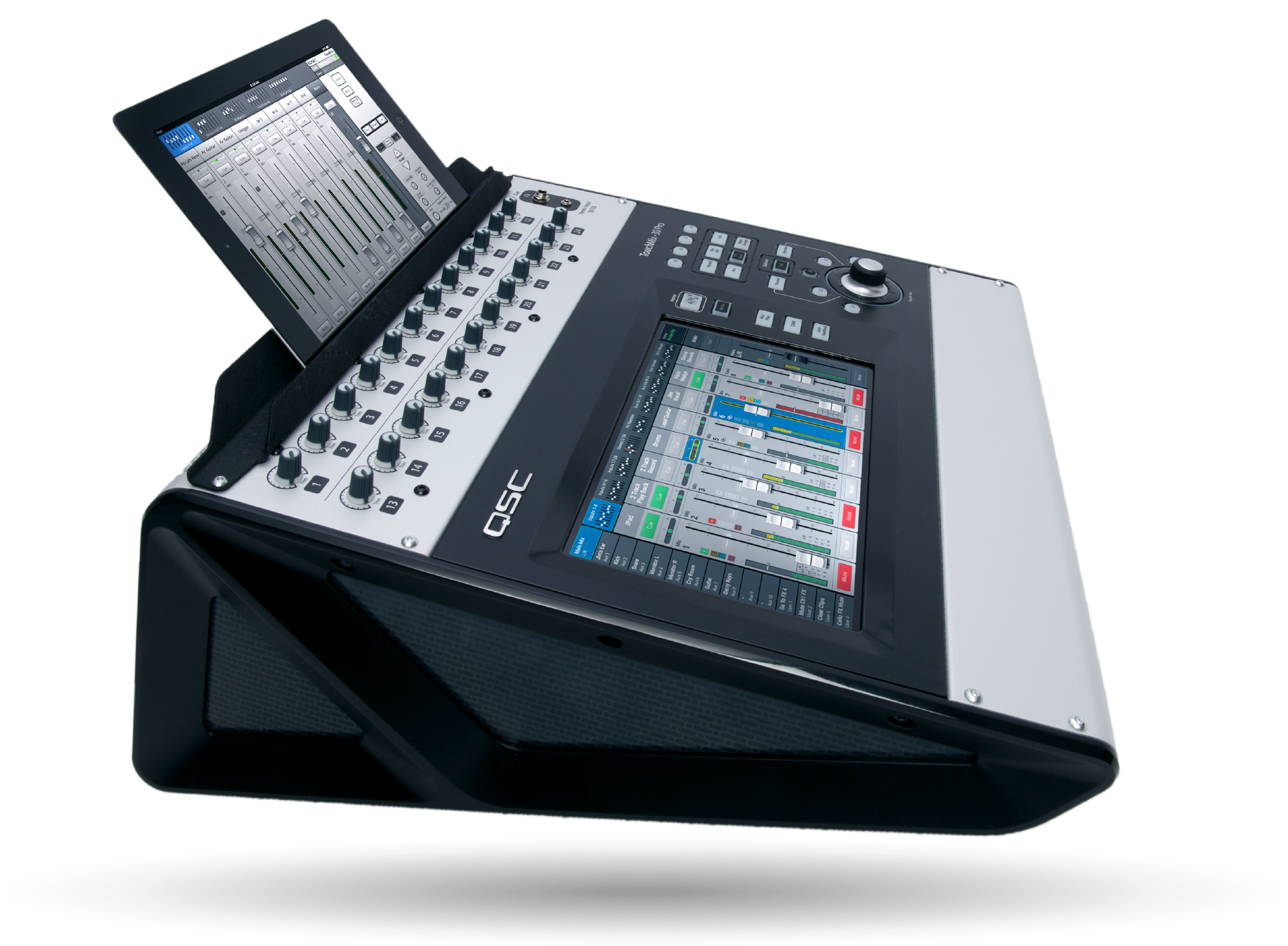 Front left view of the CXD4.2 power amplifier, a four-channel model with built-in DSP and flexible channel conifguration, for contractors, installers, and integrators.