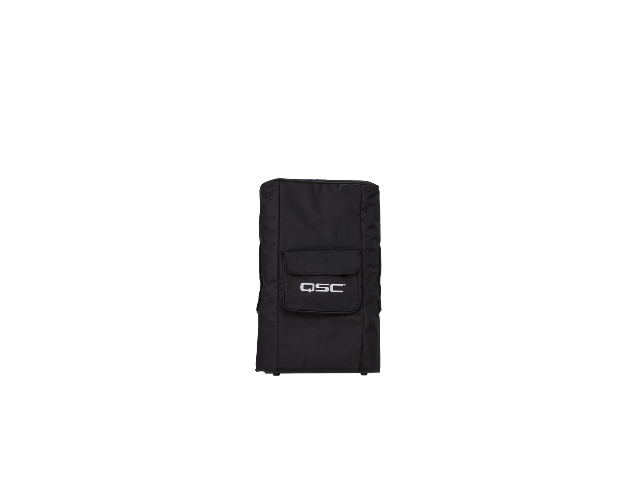 Front view of KW122 two-way powered loudspeaker in its accessory soft cover
