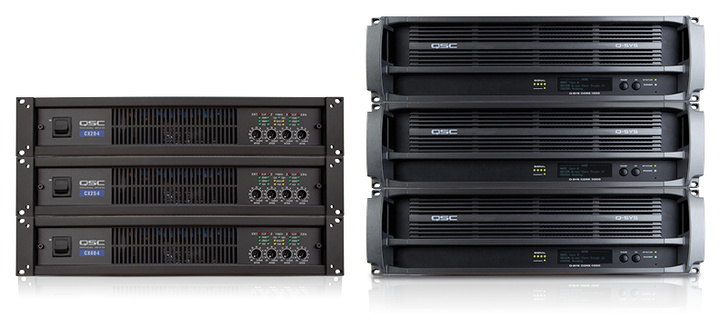 Stack of CX 4-channel amp models, plus stack of Q-Sys Enterpise Core models (Large).